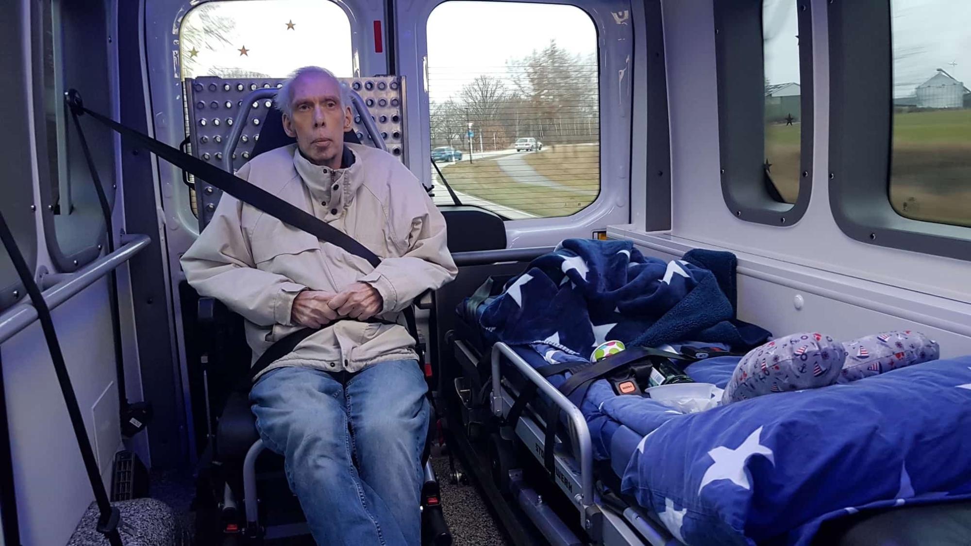 Am Morgen holten wir unseren Fahrgast im Hospiz ab. Schon beim Eintreffen war er startklar und voller Vorfreude auf den Ausflug. Ein ehrenamtlicher Mitarbeiter des Hospizes begleitete uns und unseren Fahrgast, um ihn zu unterstützen.