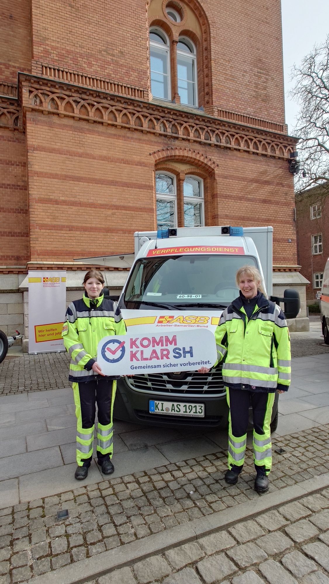 Begleitet wurde der Kampagnenauftakt von einer Präsentation der Hilfsorganisationen vor dem Landeshaus. Einsatzfahrzeuge und Mitmachangebote machten das Thema greifbar und unterstrichen die Bedeutung gemeinsamer Vorbereitung. Auch der ASB war vertreten: Der Regionalverband Kiel unterstützte die Veranstaltung mit einem Verpflegungsmobil und leistete damit einen wichtigen Beitrag zur gelungenen Gesamtpräsentation.