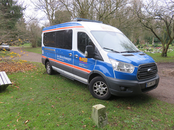An der frischen Luft lebte unser Fahrgast noch einmal richtig auf und konnte am Grab in Ruhe Abschied nehmen. Trotz anfänglicher Bedenken verlief die Tour zur allgemeinen Erleichterung ohne Zwischenfälle.
