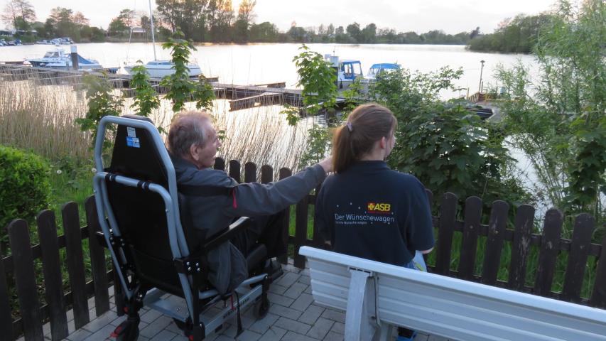Im Anschluss sollte es zur Stärkung in einen Gasthof gehen. Es dauerte eine Zeit, bis unsere Wunscherfüller die – bei älteren Generationen noch übliche – Bescheidenheit ihres Fahrgastes höflich, aber bestimmt zur Seite drängen konnten. Und so wünschte er sich dann frischen Spargel und ein Alsterwasser. Gesagt, getan... Herr H. genoss es sehr. Auch, den Enten und Vögeln auf dem See zuzusehen.
