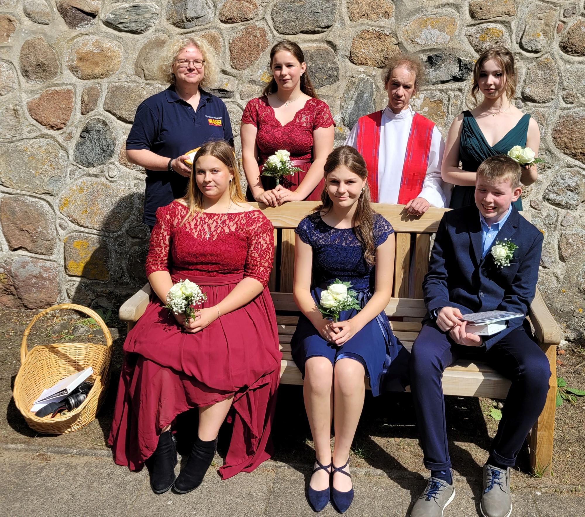 Fünf junge Menschen wurden am Sonntag, 07.07.2024 in der schönen alten Kirche in Stellau konfirmiert. Es ist Tradition, dass die Gruppe gemeinsam eine Institution aussucht, für die die Kollekte an diesem Tag eingesammelt wird. Diese fünf hatten sich für den Wünschewagen entschieden.
